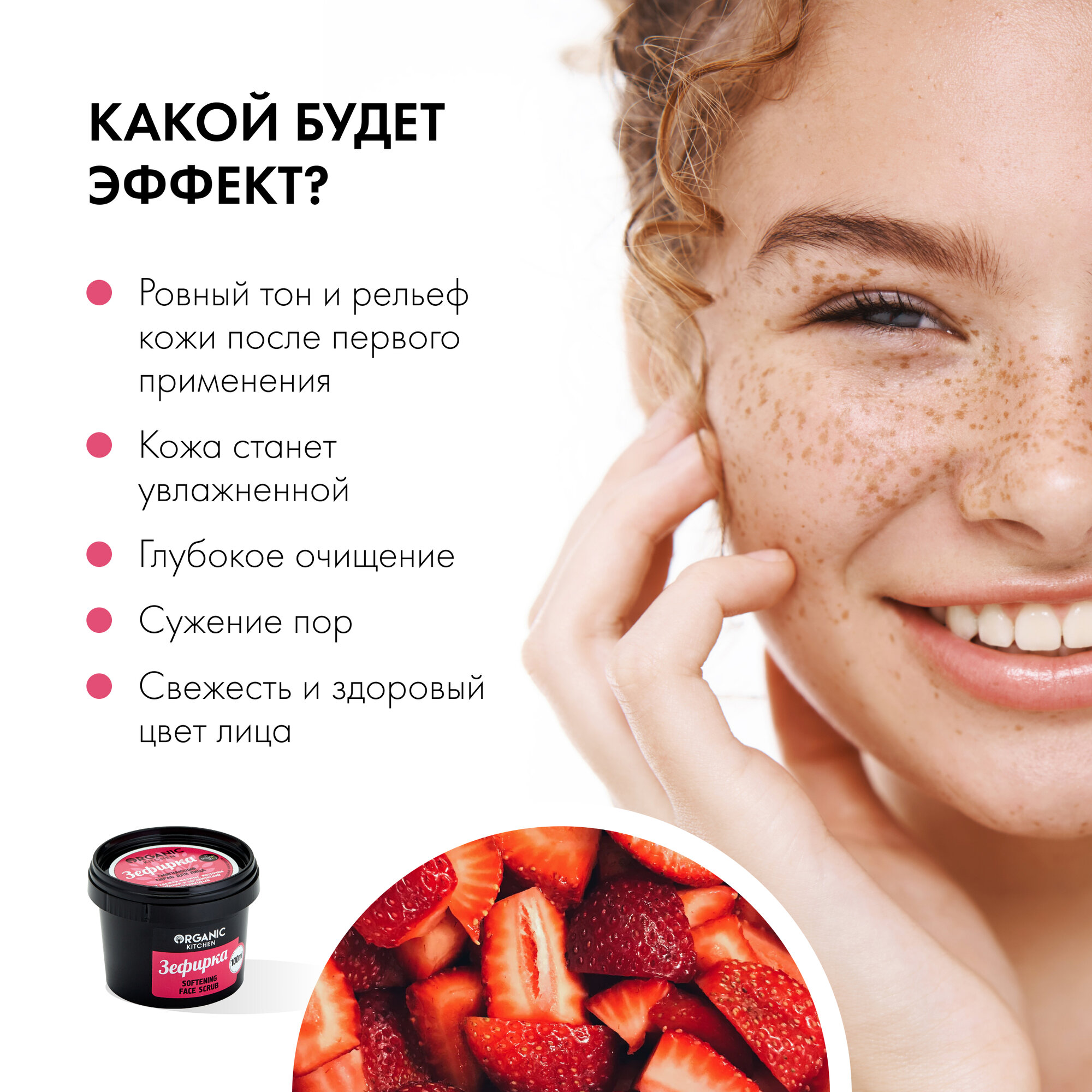 Отзывы на Скраб для лица Organic Kitchen "Зефирка" смягчающий сахарный с косточками клубники отшелушивающий очищающий 100 мл