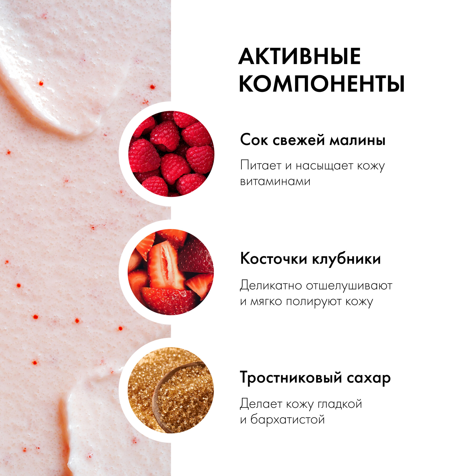 | Отшелушивающее вещество | косточки ягод и фруктов / сахар |