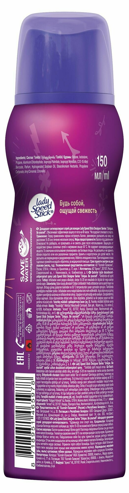 Lady Speed Stick Антиперспирант-дезодорант спрей Unique Be Yourself, 150 мл, 2 шт. 1 421 ₽