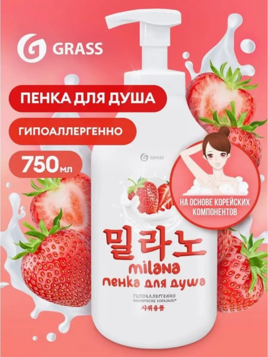 10 цен на Гель-Пенка Для Душа Milana С Экстрактом Клубники И Молочными Протеинами 750 Мл, Шт GraSS арт. 125464