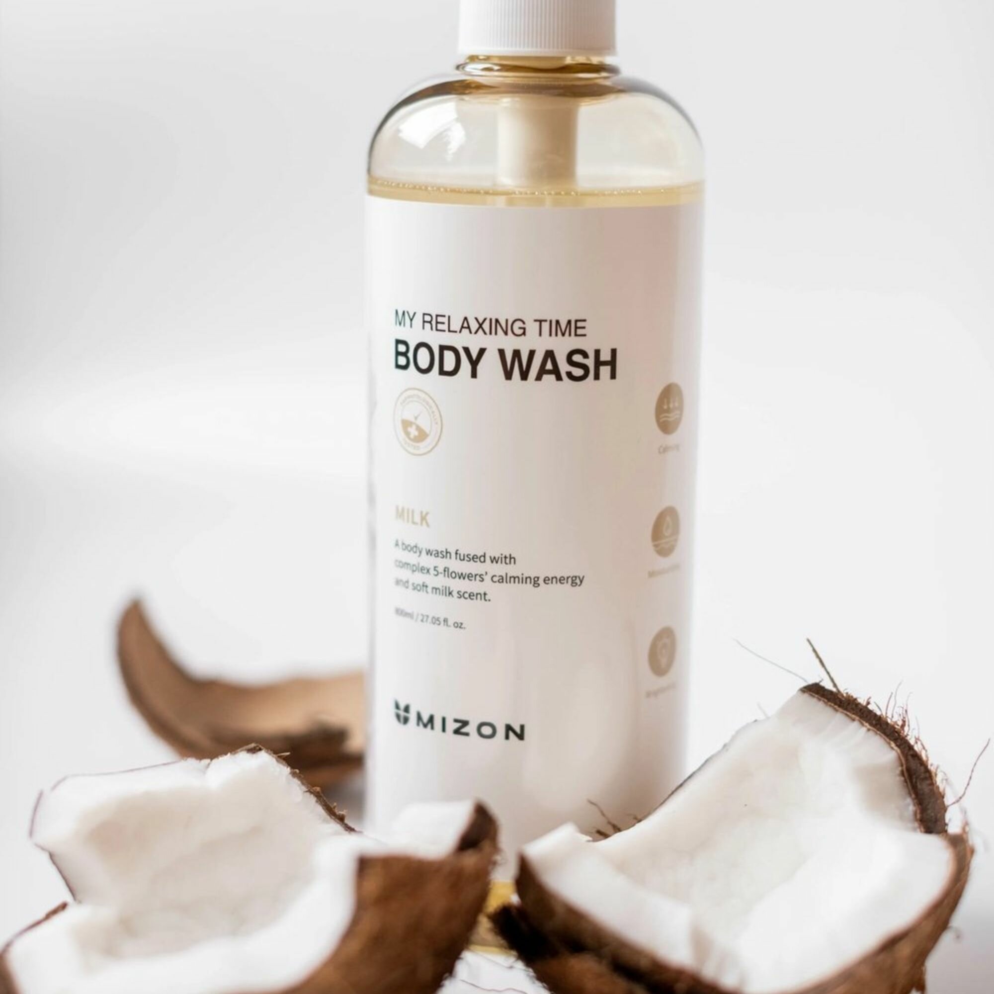 10 цен на MIZON Гель для душа с экстрактом молочного протеина 800мл. MY RELAXING TIME BODY WASH MILK