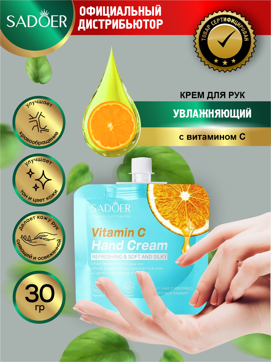 Питательный и выравнивающий тон кожи крем для рук Sadoer с экстрактом граната 30 гр х 10 шт 429 ₽