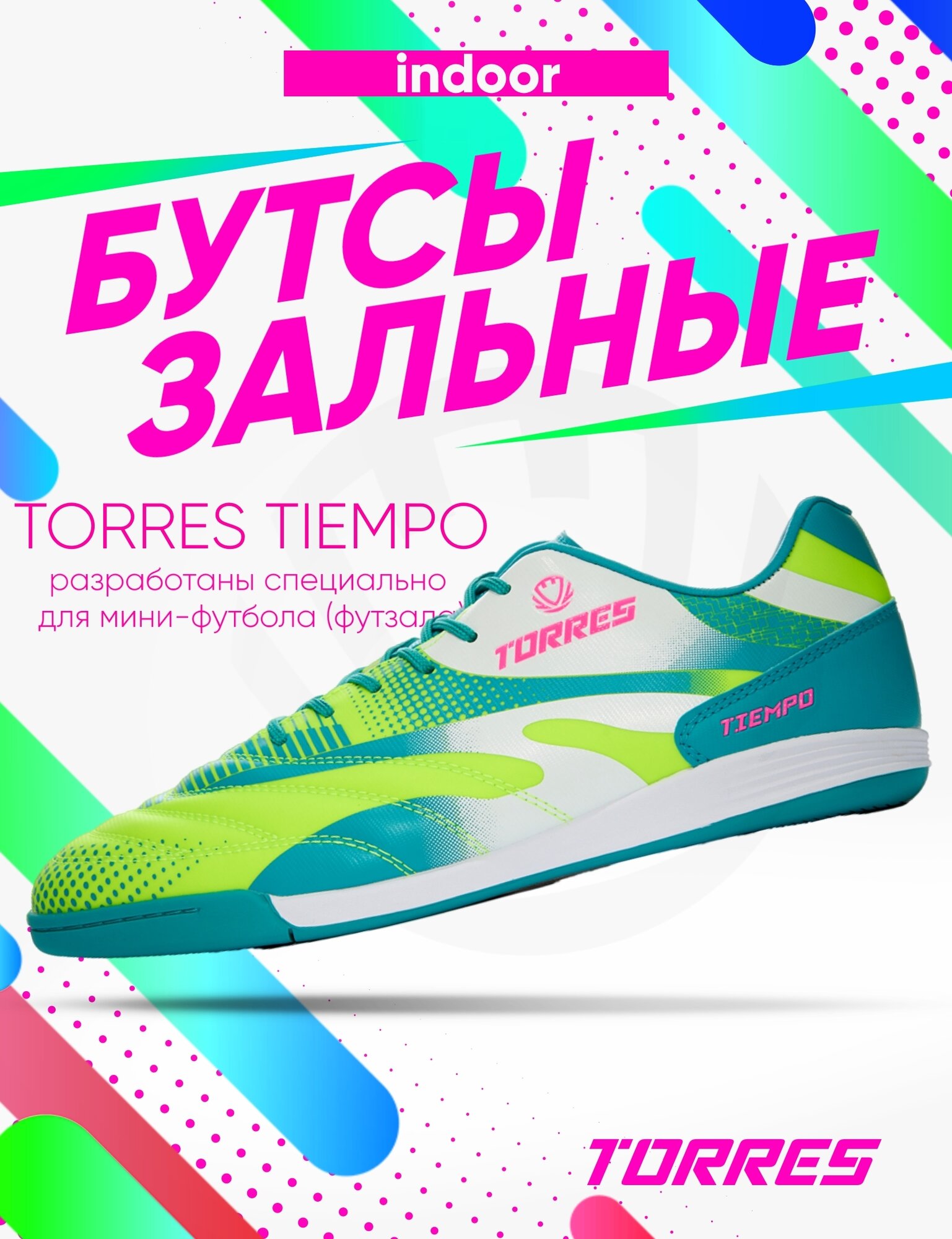 Бутсы зальные TORRES TIEMPO, TS134236-572-38, р.38, салатово-бирюзовый 2 849 ₽
