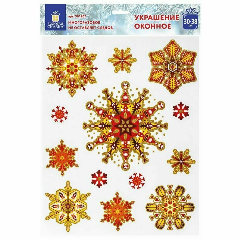 Отзывы на Украшение для окон и стекла золотая сказка "Красно-золотые снежинки 1", 30х38 см, ПВХ