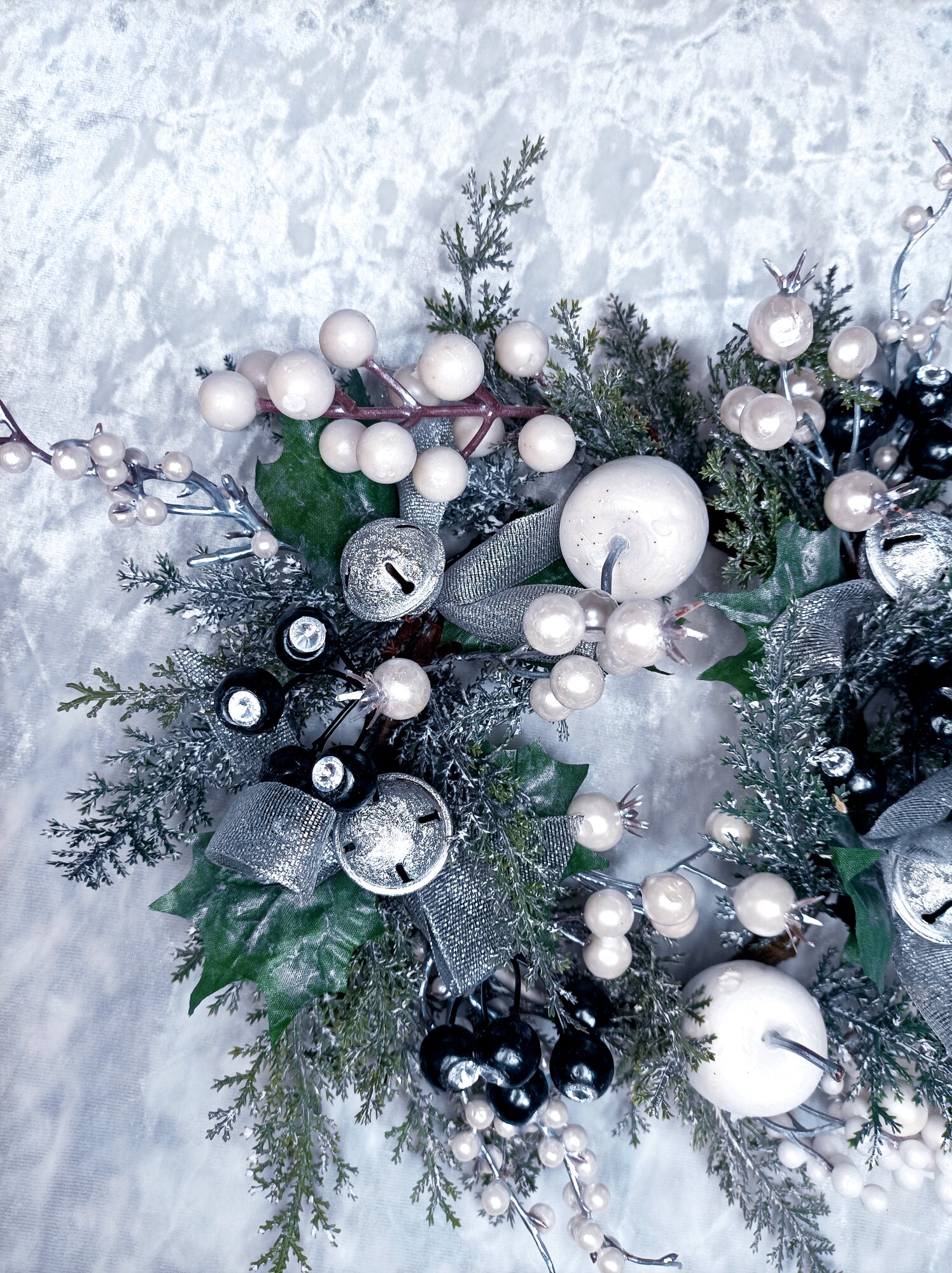 10 цен на Новогодний венок на дверь/ заснеженный с колокольчиками/d=20см