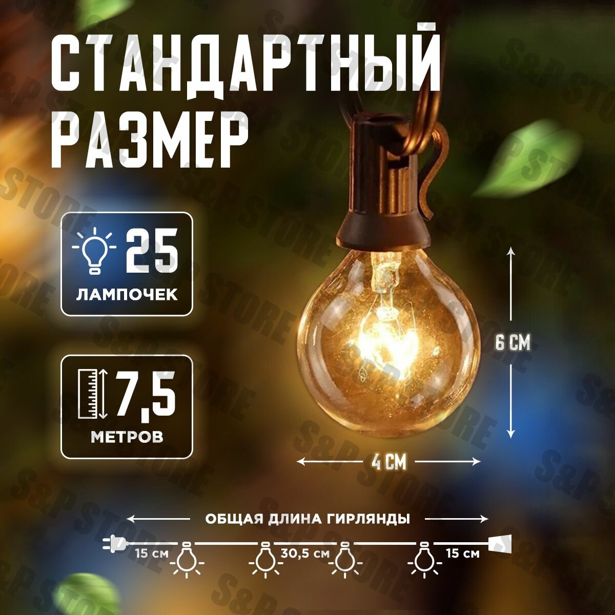 10 цен на Гирлянда уличная лампочки накаливания 7,5 метра, 25 лампочек, Белт лайт