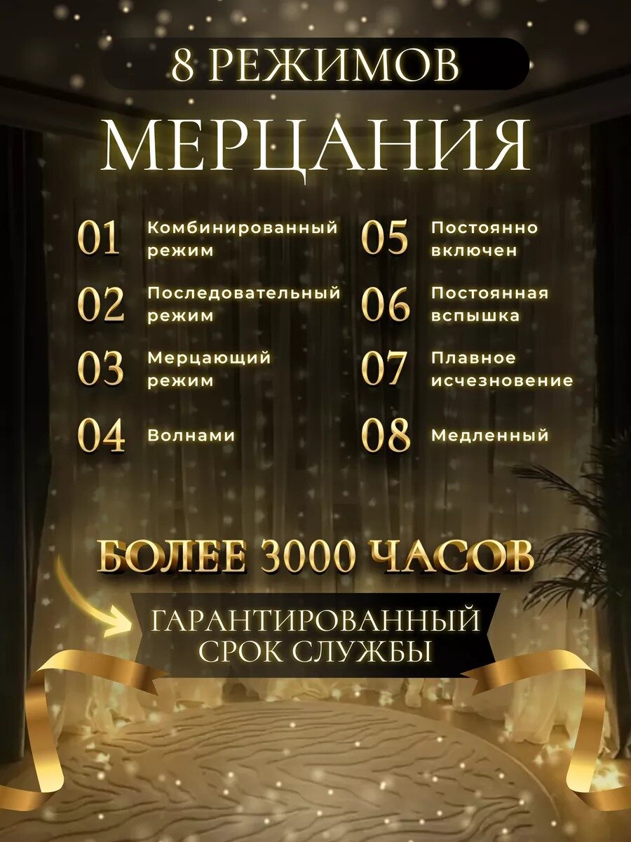 Гирлянда электрическая светодиодная 3х2 метра / Гирлянда штора занавес новогодняя 419 ₽