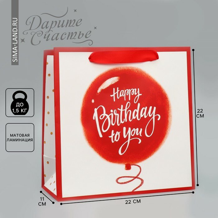 Пакет ламинированный квадратный ''Хеппи пездей'', 22 х 22 х 11 см информация: