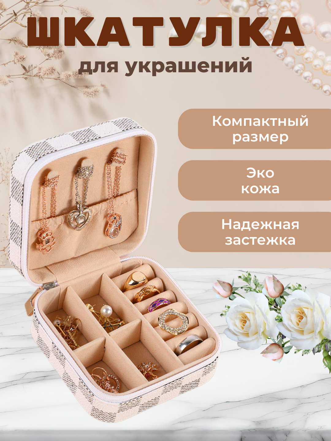 Шкатулка для хранения ювелирных украшений бежевая