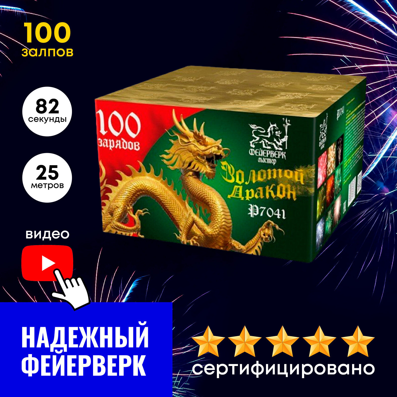 Батарея салютов Фейерверк Мастер P7041 Золотой дракон (100 залпов, 0.8" дюйма, 75 секунд, 25 метров) - фейерверк салют информация: