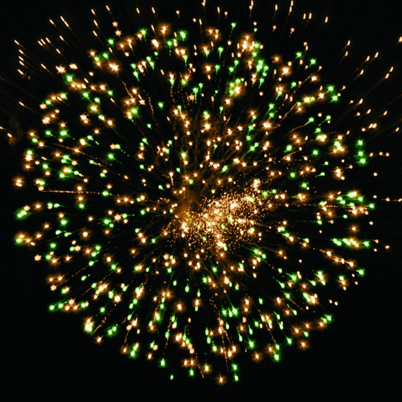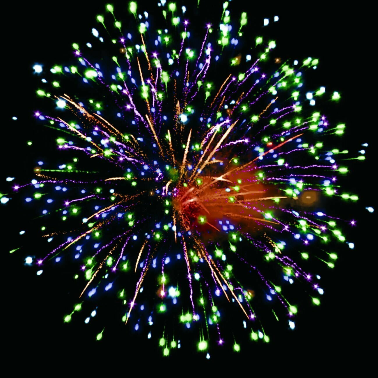 | Эффекты | Разноцветные кометы разрываются сферами из: 1.красных / зелёных и белых мерцающих огней; 2. фиолетовых / синих и зелёных мерцающих огней; 3. золотых мерцающих форсов и зелёных мерцающих огней; 4-5.золотых / серебряных форсов и золотых трещащих разлетающихся искр; 6. зелёных и золотых мерцающих огней. |