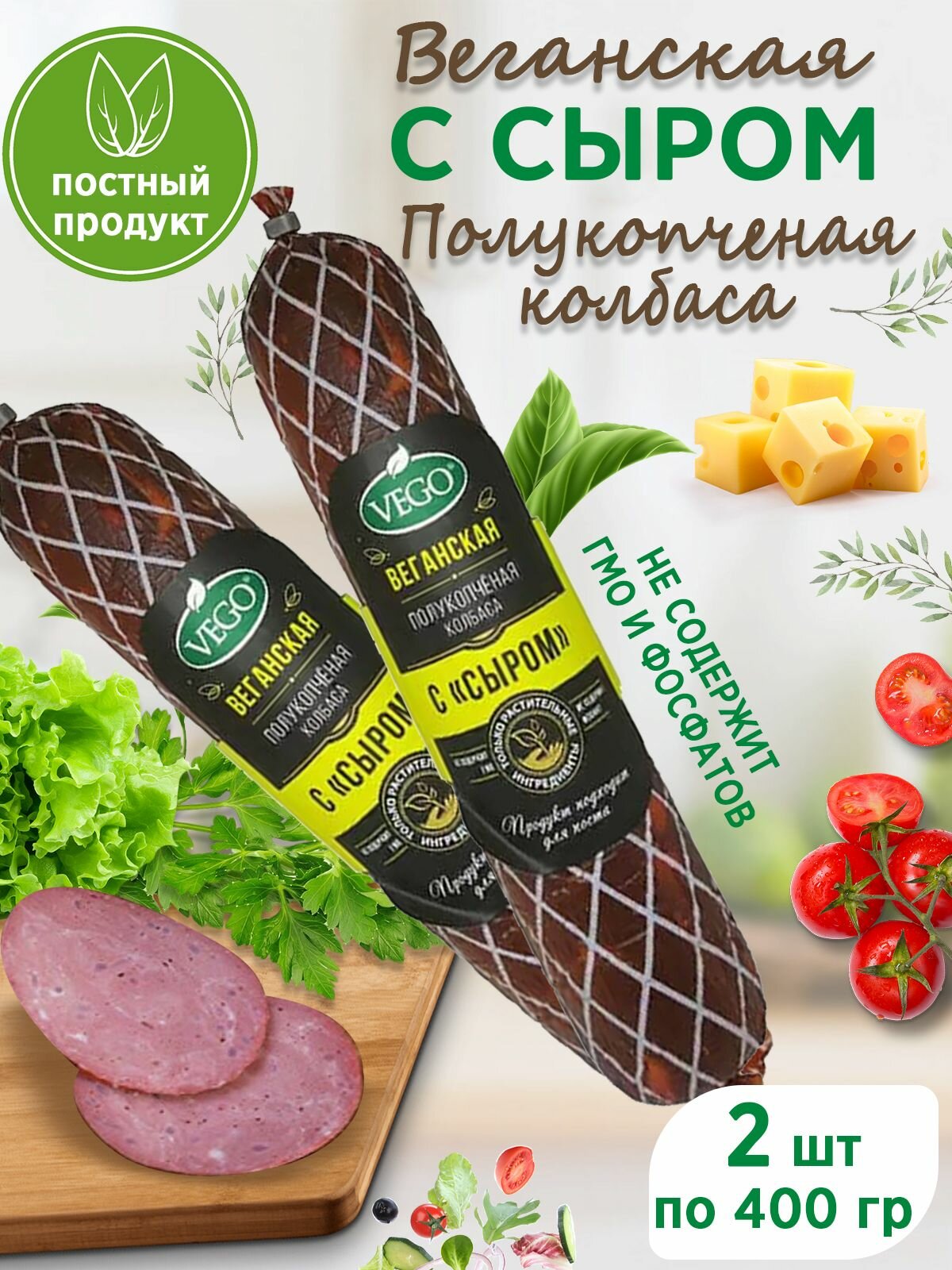 Колбаса постная веганская полукопченая с сыром VEGO, 2 шт по 400 гр информация: