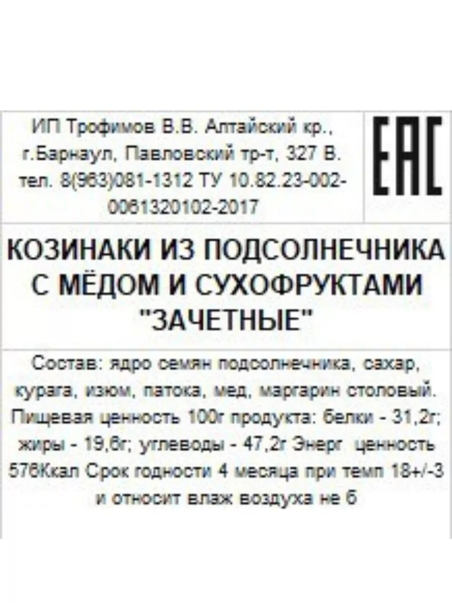 Козинаки из подсолнечника зачетные 2 кг информация: