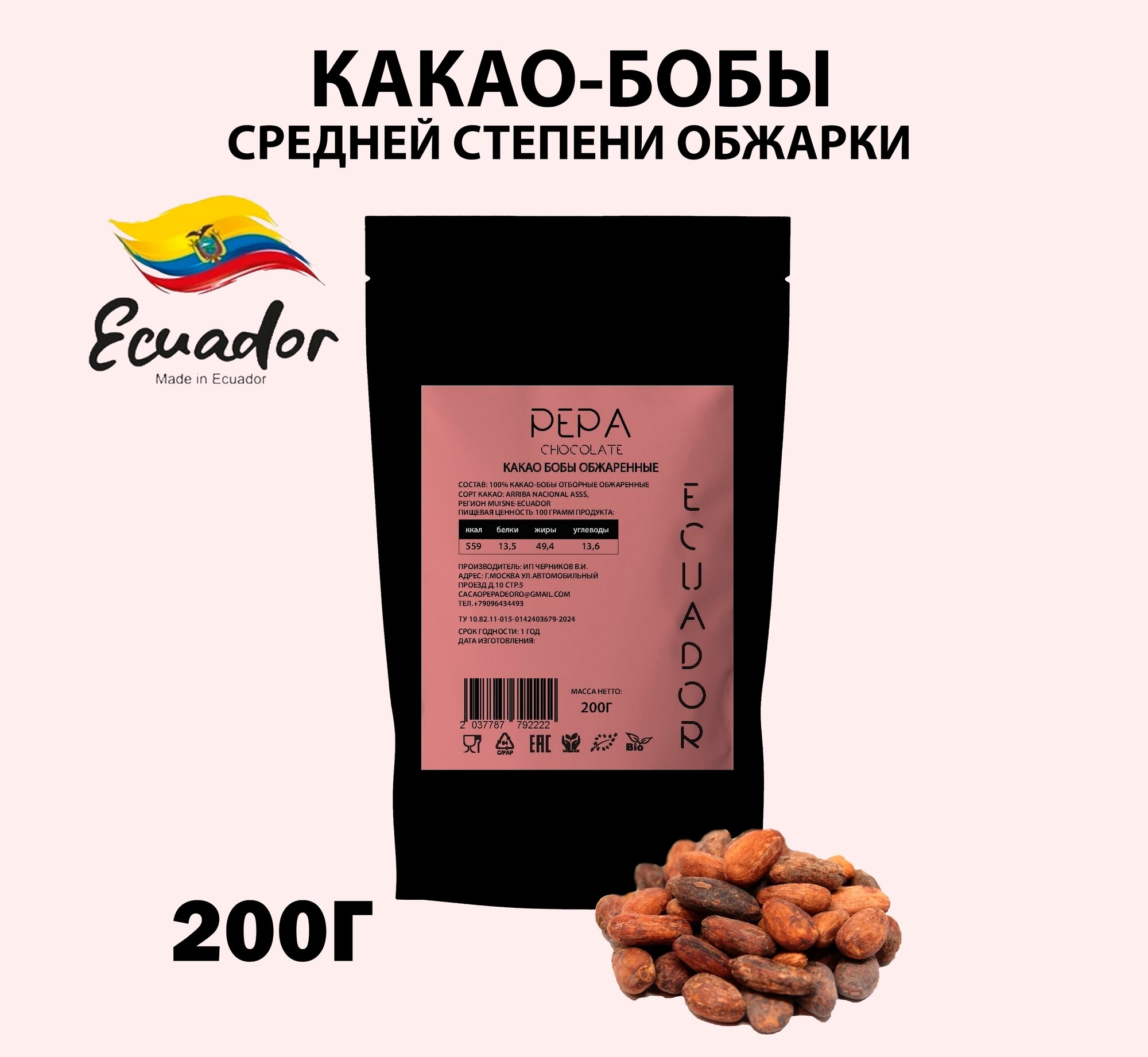 Какао-бобы обжаренные Arriba Nacional Эквадор, 200г информация:
