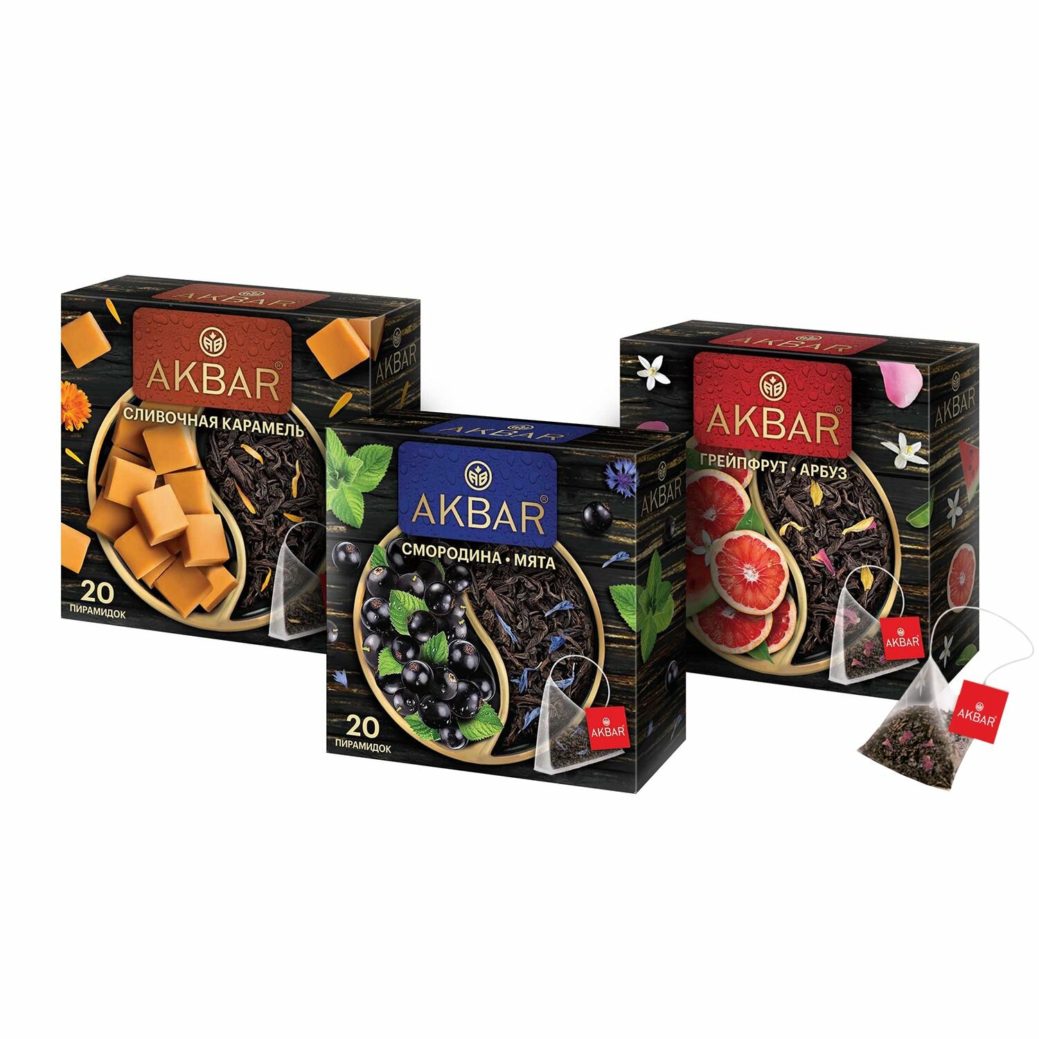 Набор подарочный "Акбар" три вкуса : грейпфрут и арбуз, сливочная карамель, смородина и мята, 60 пирамидок информация: