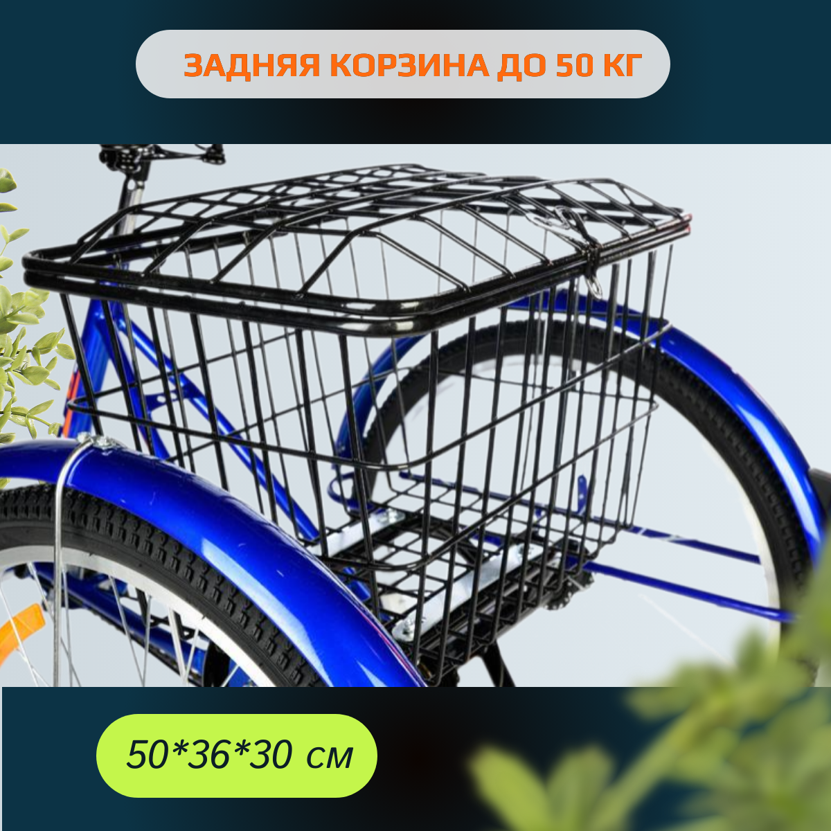 Трехколесный велосипед взрослый синий РВЗ Чемпион 20, с корзиной информация: