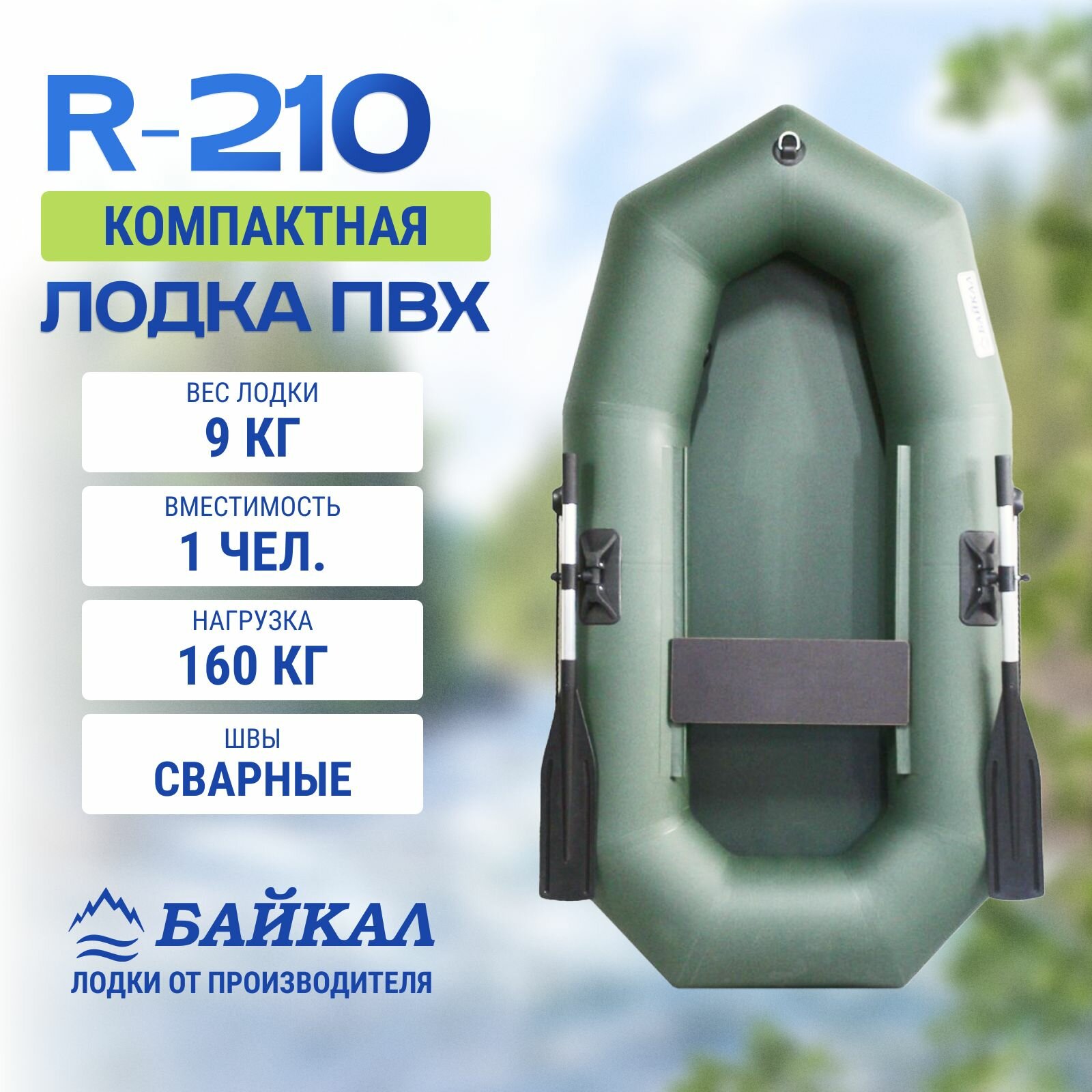 Лодка надувная для рыбалки ПВХ Байкал 210 гребная одноместная камуфляж информация: