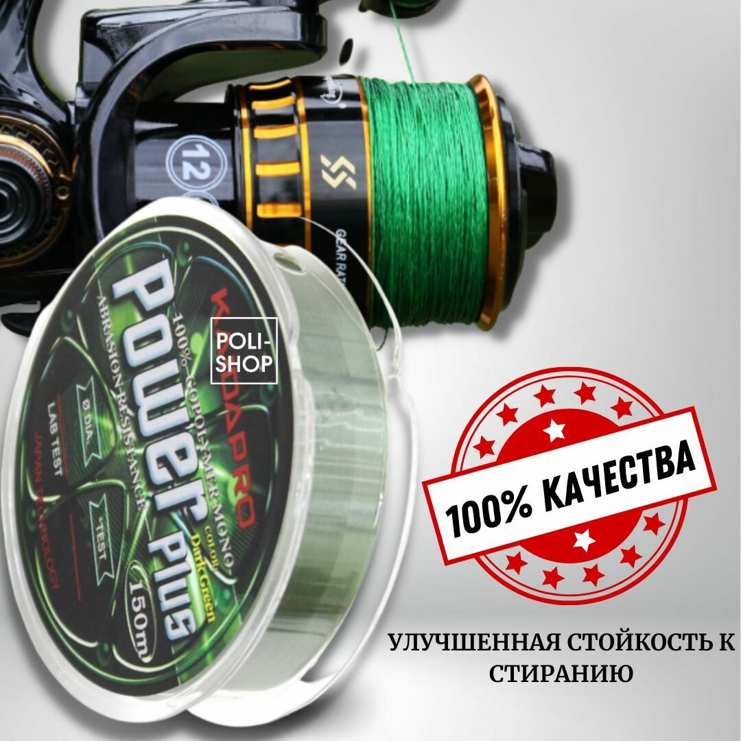 Леска Kaida POWER PLUS 150м Dark Green 0.26мм 8.42кг 18.58Lb 405 ₽