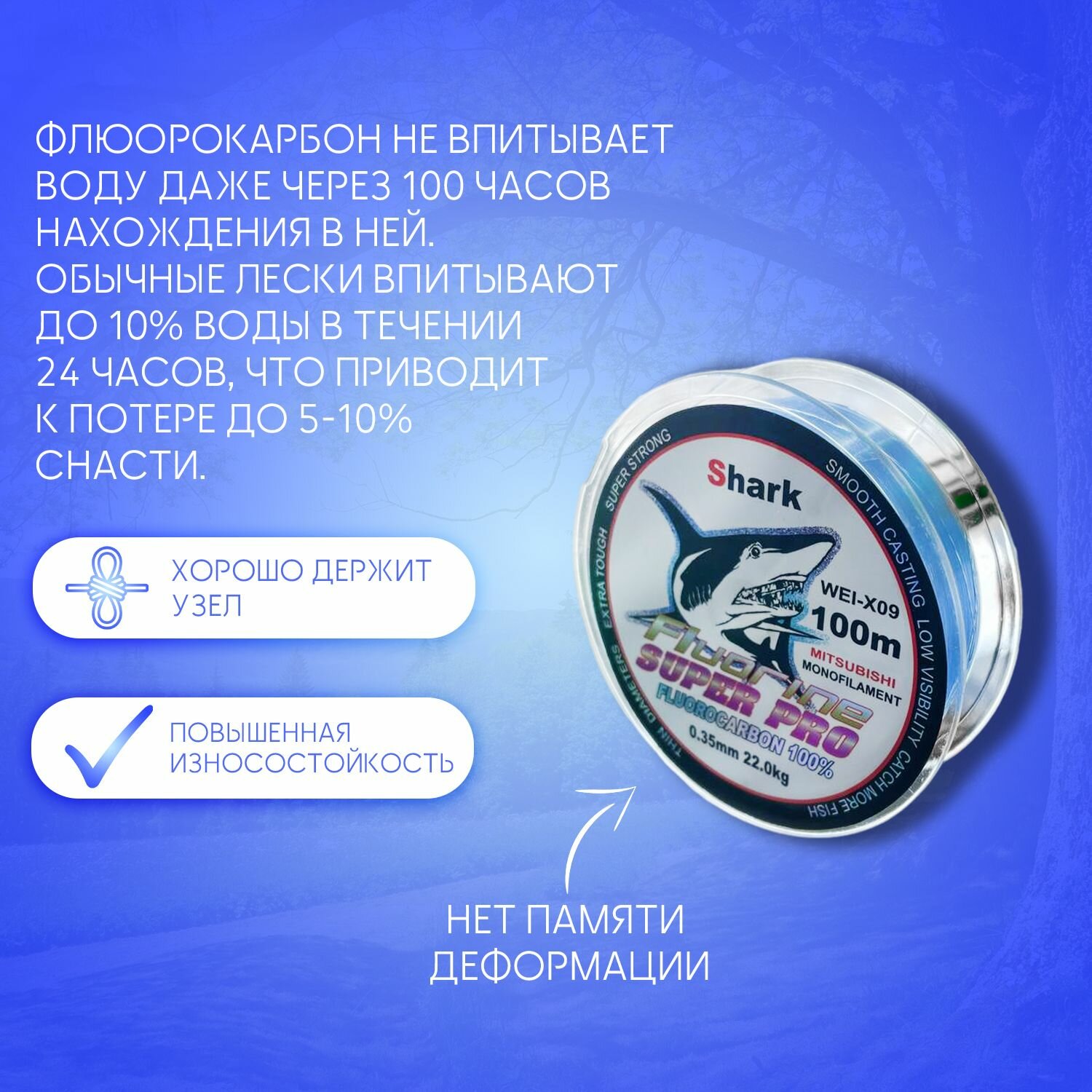 Леска Флюорокарбоновая Shark 100м 0.35мм 22кг голубая информация: