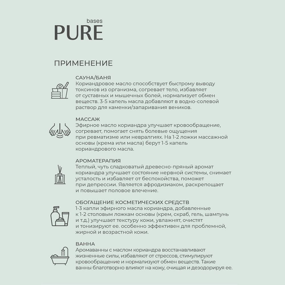 Натуральное 100% эфирное масло PURE BASES Кориандр, 10 мл. 328 ₽
