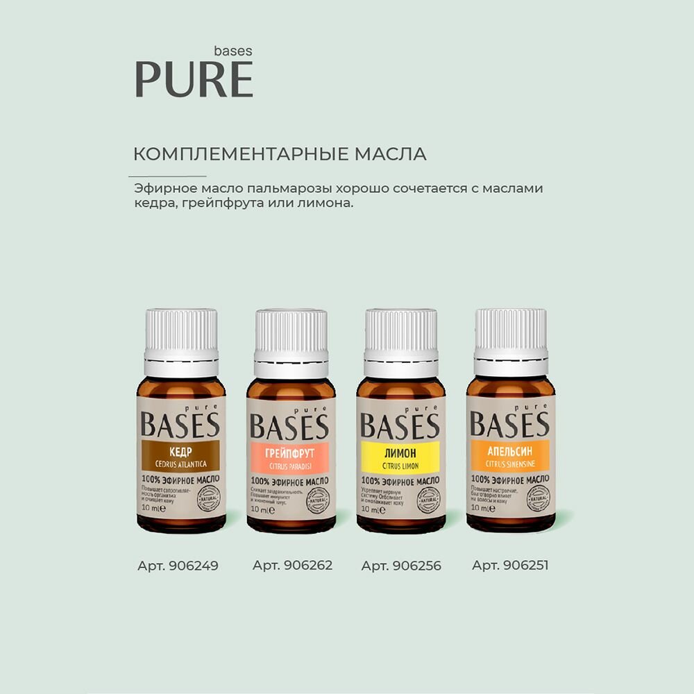 Натуральное 100% эфирное масло PURE BASES Пальмароза, 10 мл. 416 ₽
