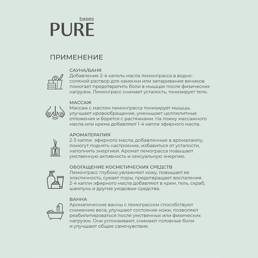 Натуральное 100% эфирное масло PURE BASES Лемонграсс, 10 мл. 283 ₽