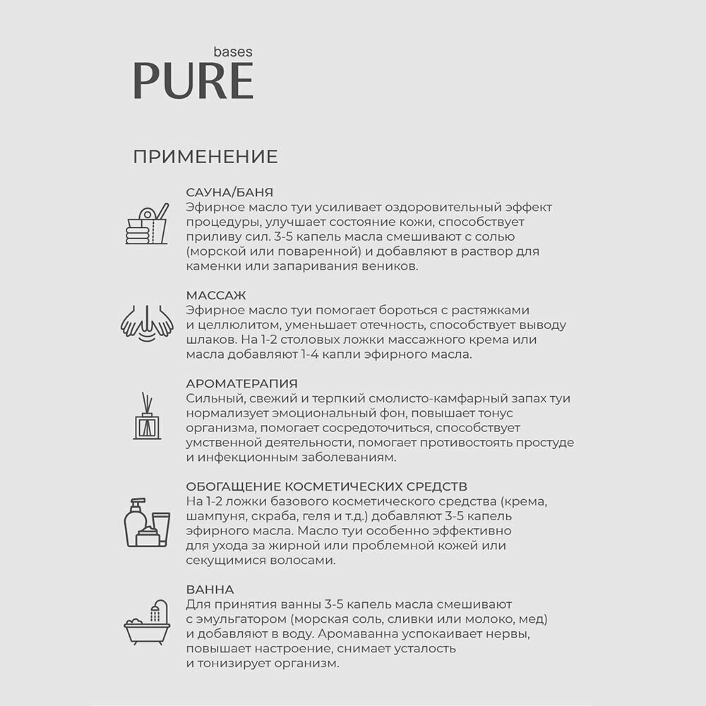 Натуральное 100% эфирное масло PURE BASES Туя, 10 мл. 285 ₽