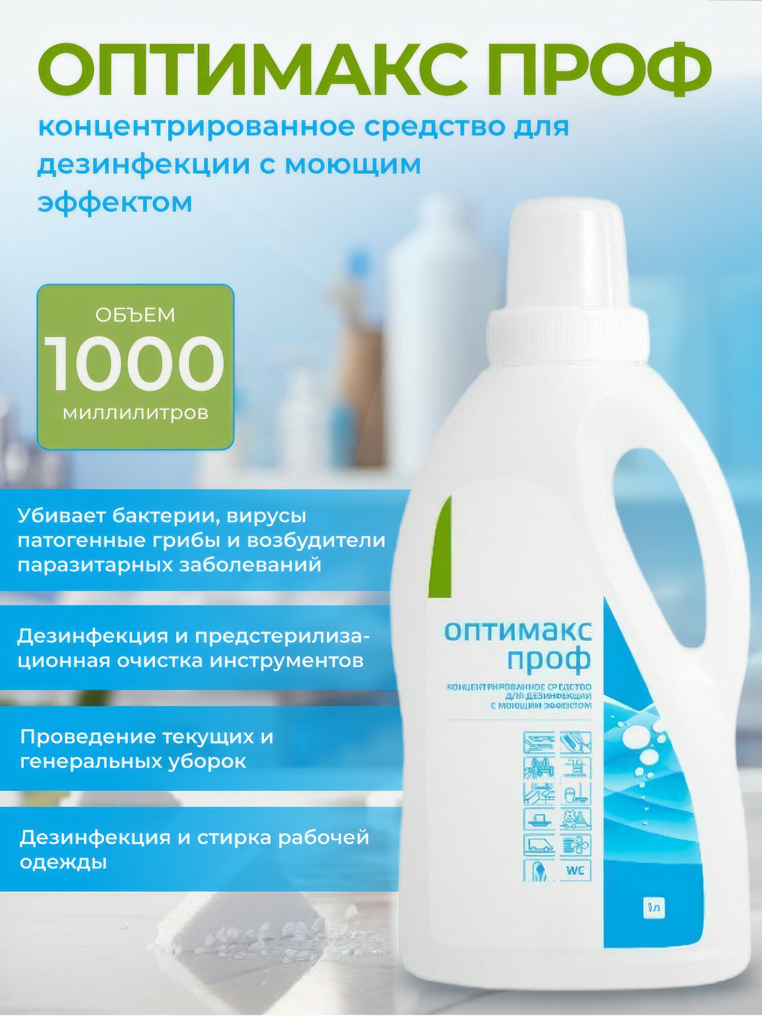 Интерсэн-плюс Оптимакс Проф универсальное концентрированное дезинфицирующее средство с моющим эффектом, (с мерным колпачком), 1000 мл информация: