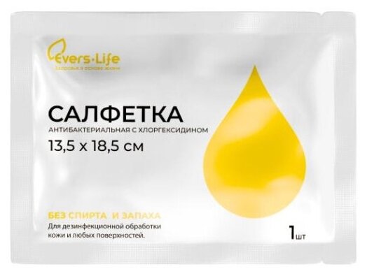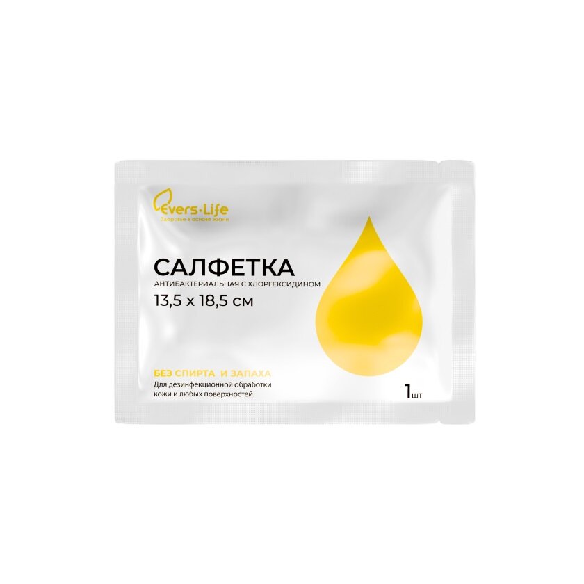 Салфетка антибактериальная с хлоргексидином Эверс Лайф/EVERSMED 13,5x18,5см информация: