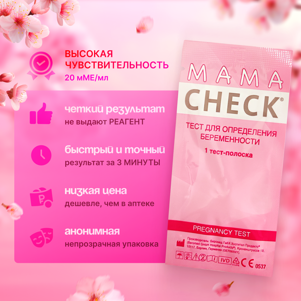 Отзывы на Тест для определения беременности Mama Check, Тест на беременность Мама Чек, упаковка 25 штук