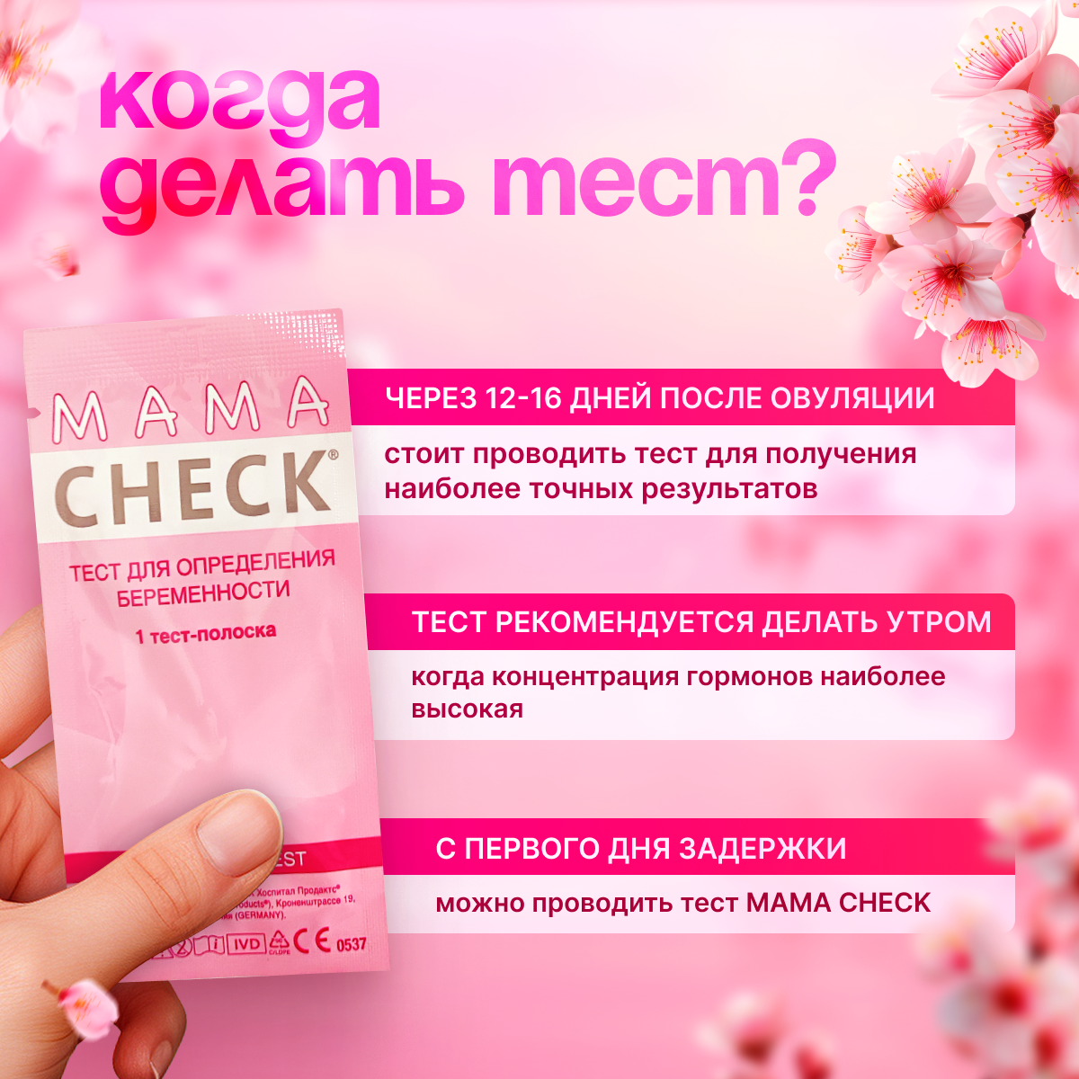 Тест для определения беременности Mama Check, Тест на беременность Мама Чек, упаковка 25 штук информация: