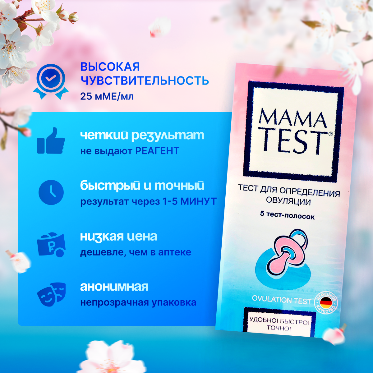10 цен на Тест для определения овуляции MAMA TEST №5, Тест на овуляцию Мама Тест (5шт. в упаковке)