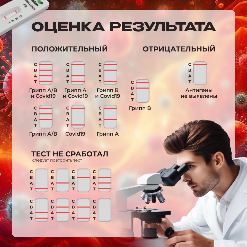 Экспресс-тест на Ковид -19 и грипп тип A и B в мазках из носоглотки или ротоглотки человека информация:
