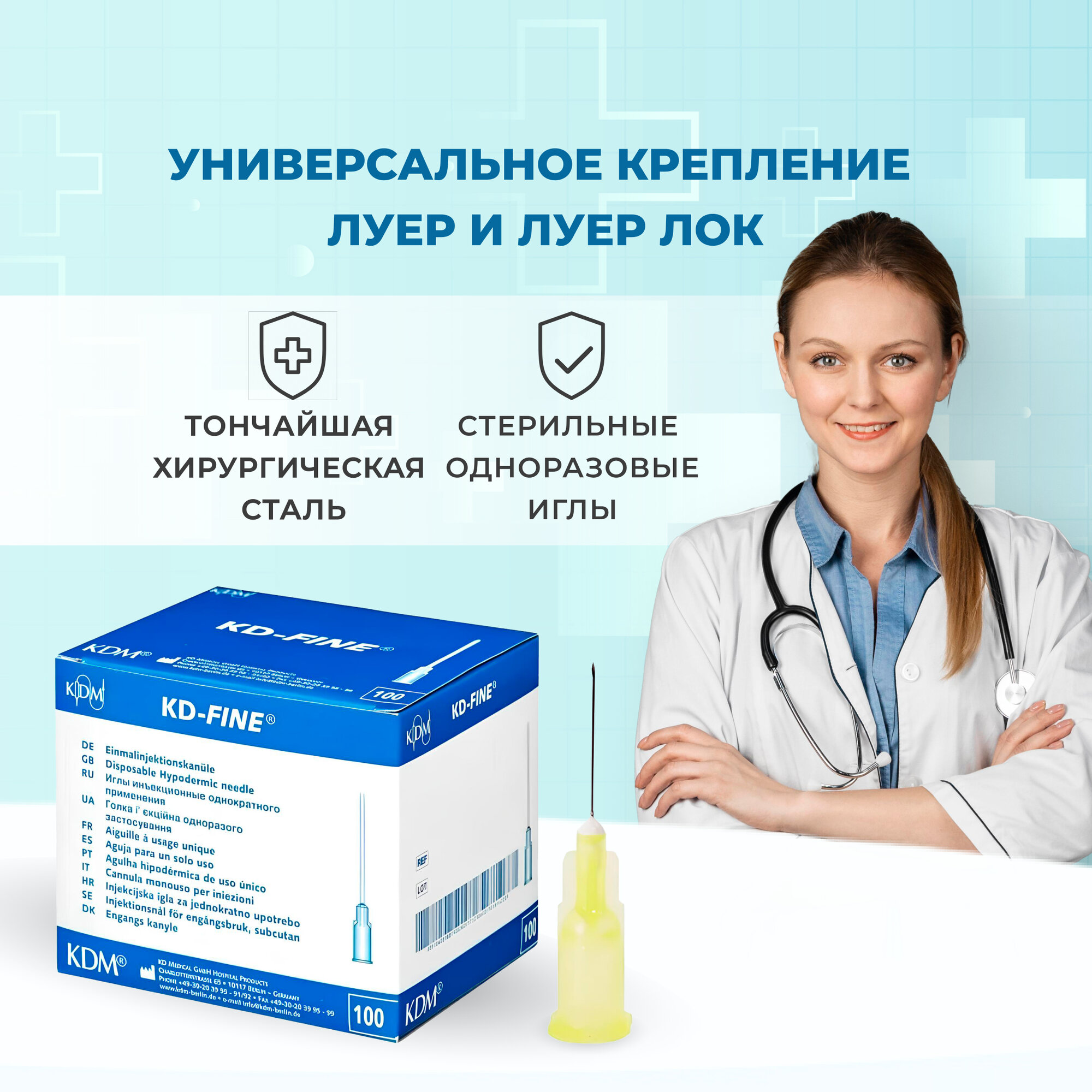 Иглы инъекционные стерильные KD-Fine 26G (0.45х12), 100 шт
