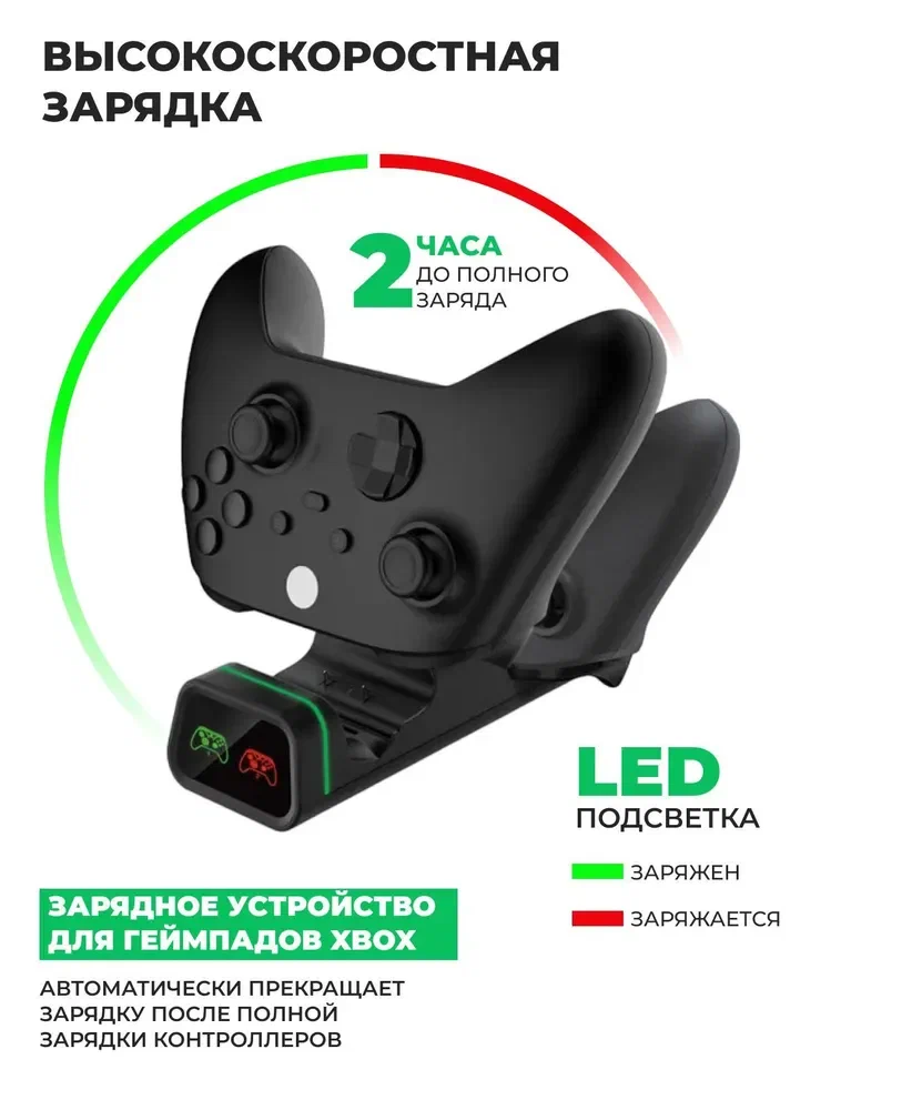 Отзывы на Зарядная станция для джойстиков геймпадов Xbox One / X-Series S / X / Dobe Charging Dock + 2 аккумулятора 800mAh