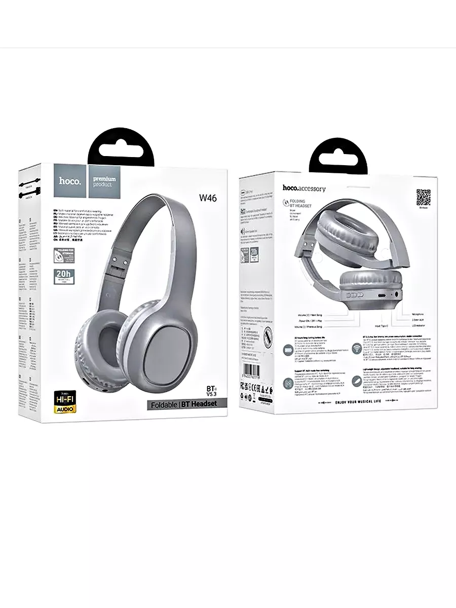 Отзывы на Bluetooth-наушники полноразмерные Bluetooth 5.3 200mah Hoco W46 Charm Light Blue Grey