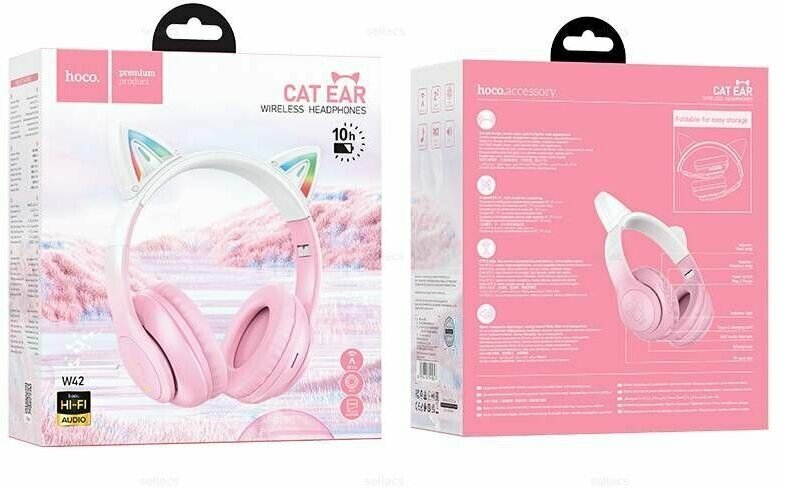hoco Беспроводные детские наушники с кошачьими ушками светящиеся Hoco W42 Premium розовые Розовый информация: