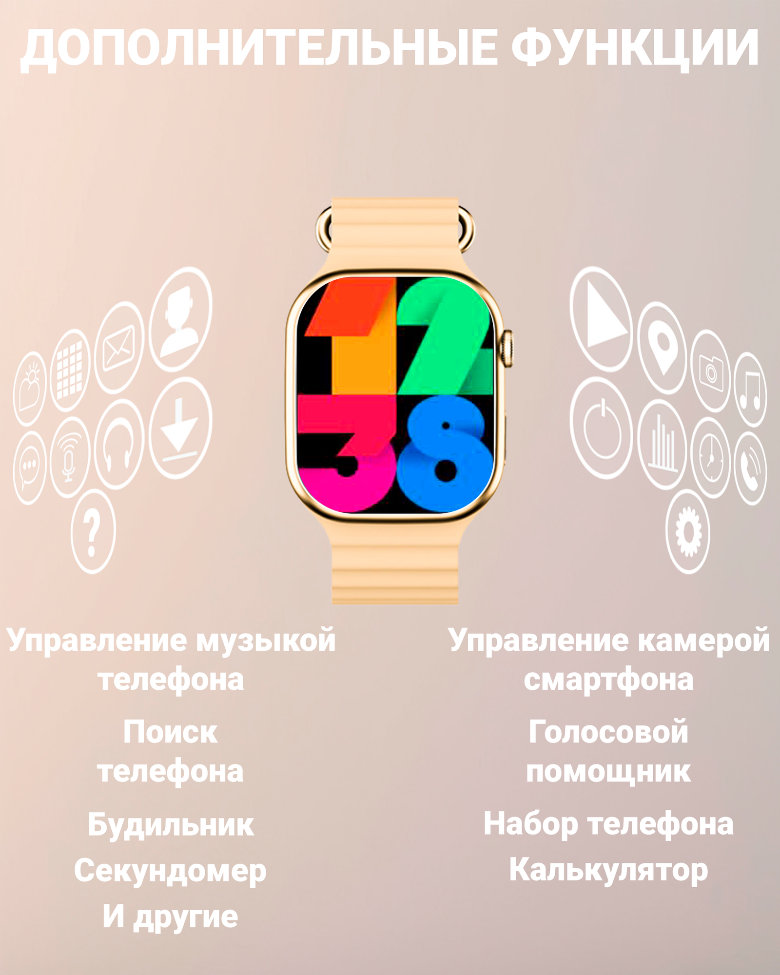 Смарт часы X 8 pro, умные часы Smart Watch series 8, 45мм, уведомления, звонки, золотистые 2 693 ₽