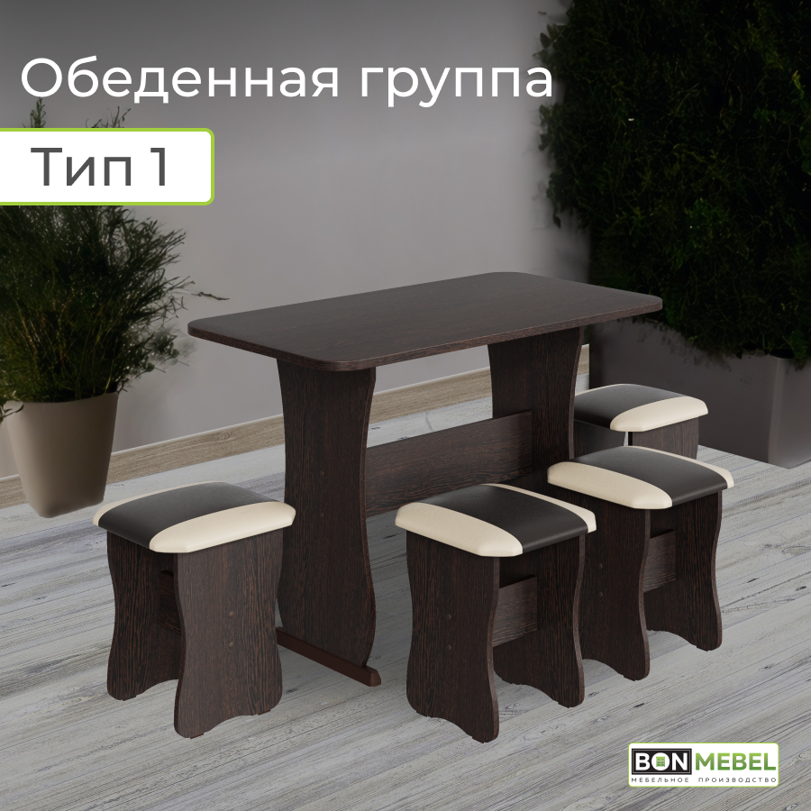 10 цен на Обеденная группа BONMEBEL, Тип 1, ЛДСП Дуб Венге/КЗ Шоколад/Бежевый, стол 110x60x76 см, 4 табурета
