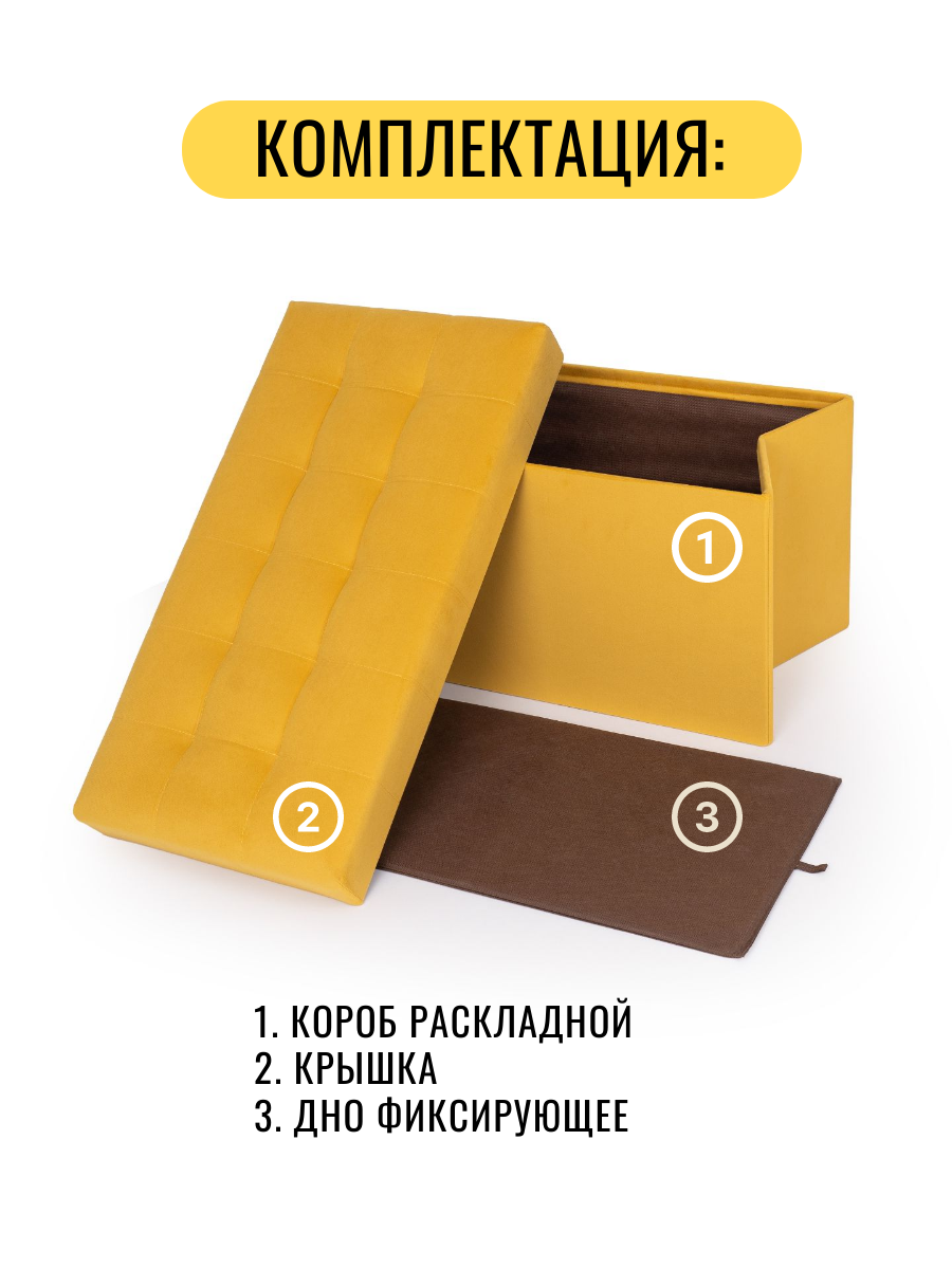 Отзывы на Банкетка пуф в прихожую и спальню складной с ящиком для хранения, 73*37*40см, велюр горчичный