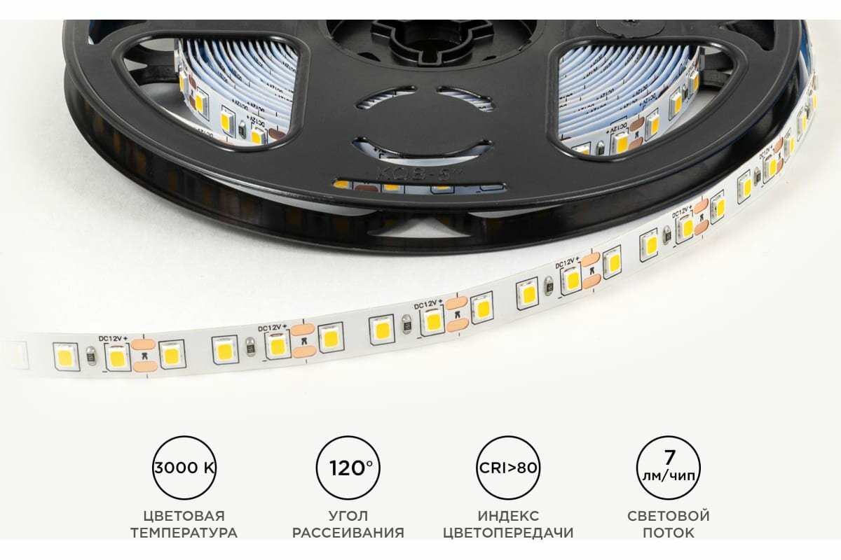 Светодиодная лента 12В, 9,6Вт/м, 3000К, IP20, 5м информация: