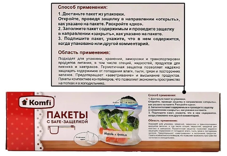 Пакеты с sаfe-защелкой KOMFI 1 л, 15 шт информация:
