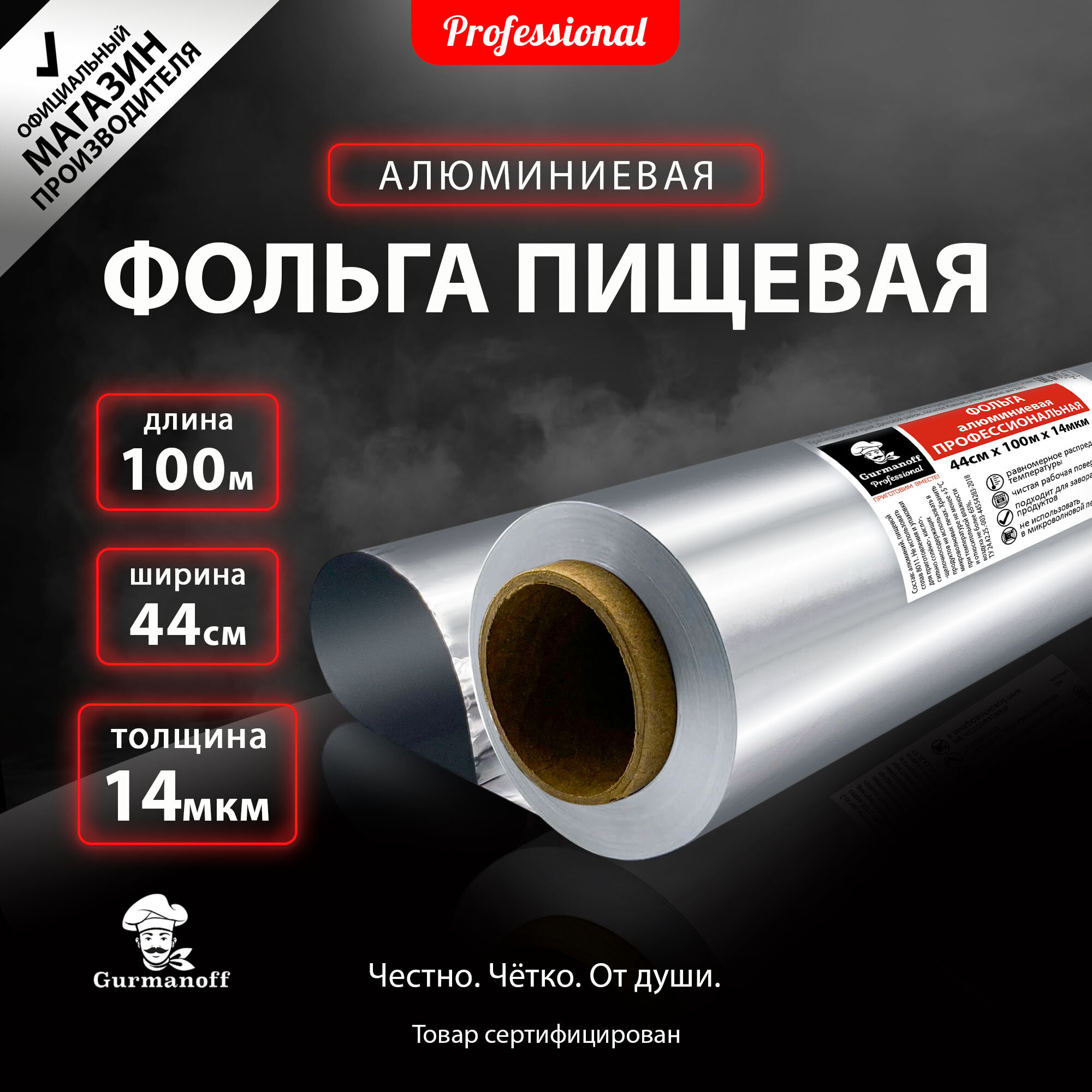 Фольга пищевая Gurmanoff 100 м х 44 cм 14 мкм прочная 1 779 ₽