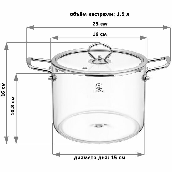 | Дополнительная информация | Кастрюля "Crystal glass" 23х16х16 см 1,5 л, с крышкой ф15 , высота без крышки - 10,8 см, диаметр дна - 15 см, боросиликатное стекло |