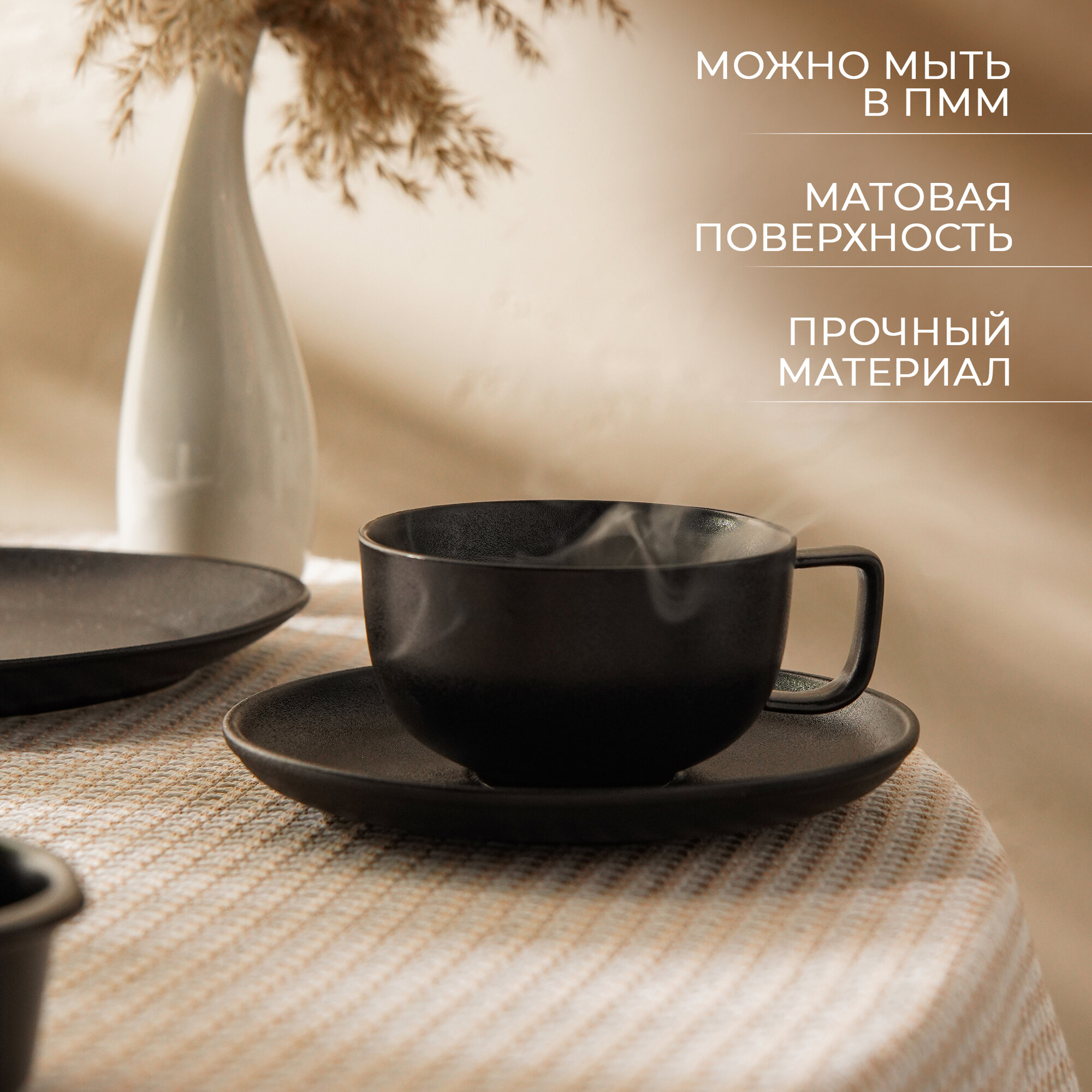 10 цен на Чайная пара фарфоровая для сервировки стола, кружка с блюдцем для чая и кофе Magistro Carbon, 250 мл, цвет чёрный