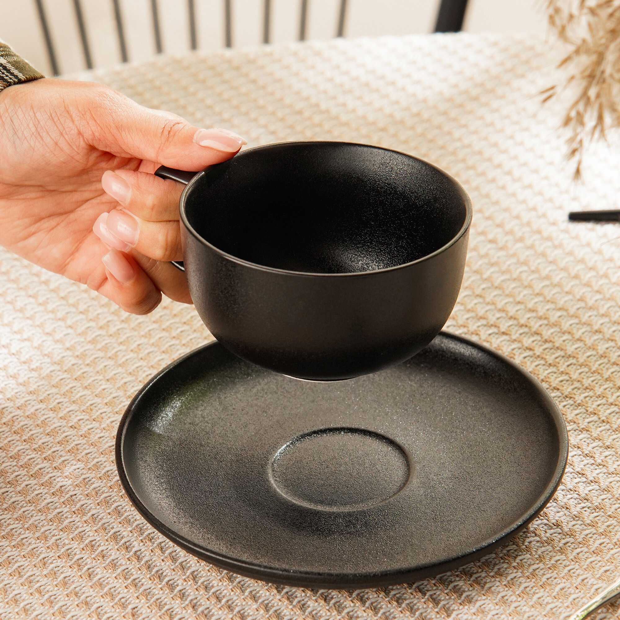 Отзывы на Чайная пара фарфоровая для сервировки стола, кружка с блюдцем для чая и кофе Magistro Carbon, 250 мл, цвет чёрный