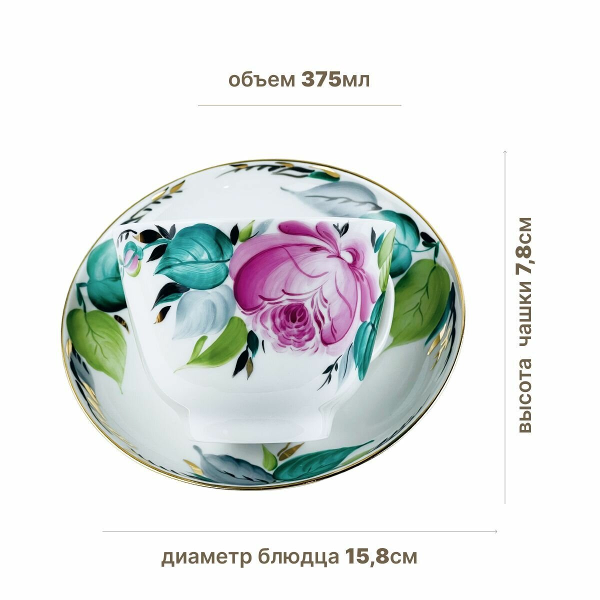 Чайная пара 375 мл. Форма "Подарочная", рисунок "Смоковница". Твердый фарфор. Чашка с блюдцем. Императорский фарфоровый завод ИФЗ ЛФЗ