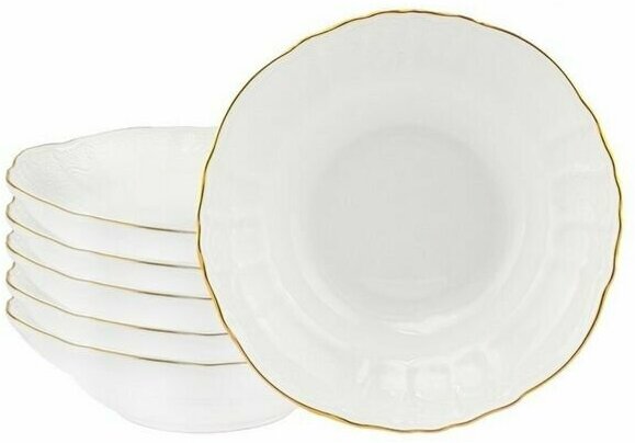 Набор из 6 глубоких тарелок 23 см. Фарфор. Lenardi. Коллекция "Maria Gold". Подарочная упаковка.
