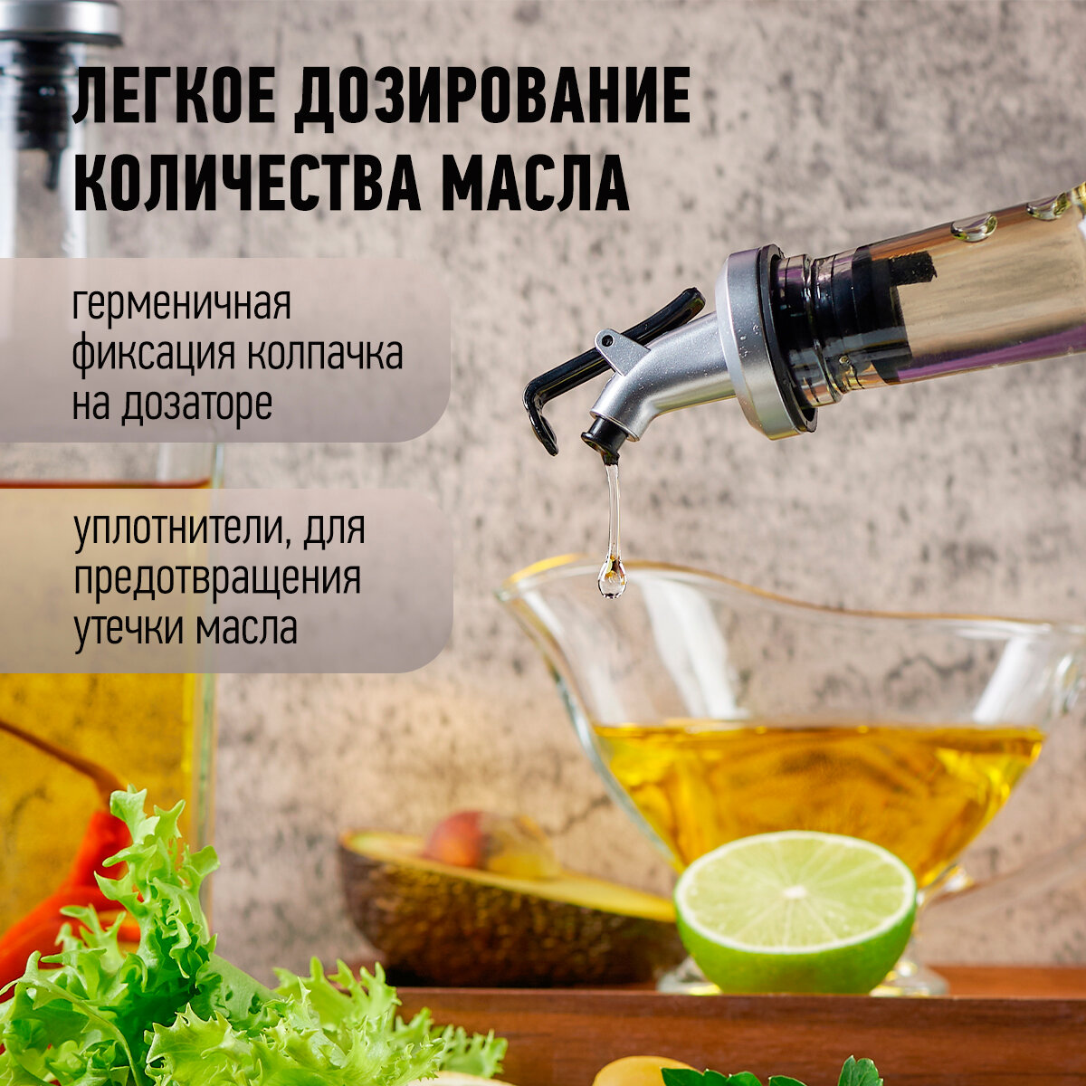 10 цен на Бутылки для масла Archelia, с дозатором, прозрачные, стекло, пластик, 500мл, 2шт