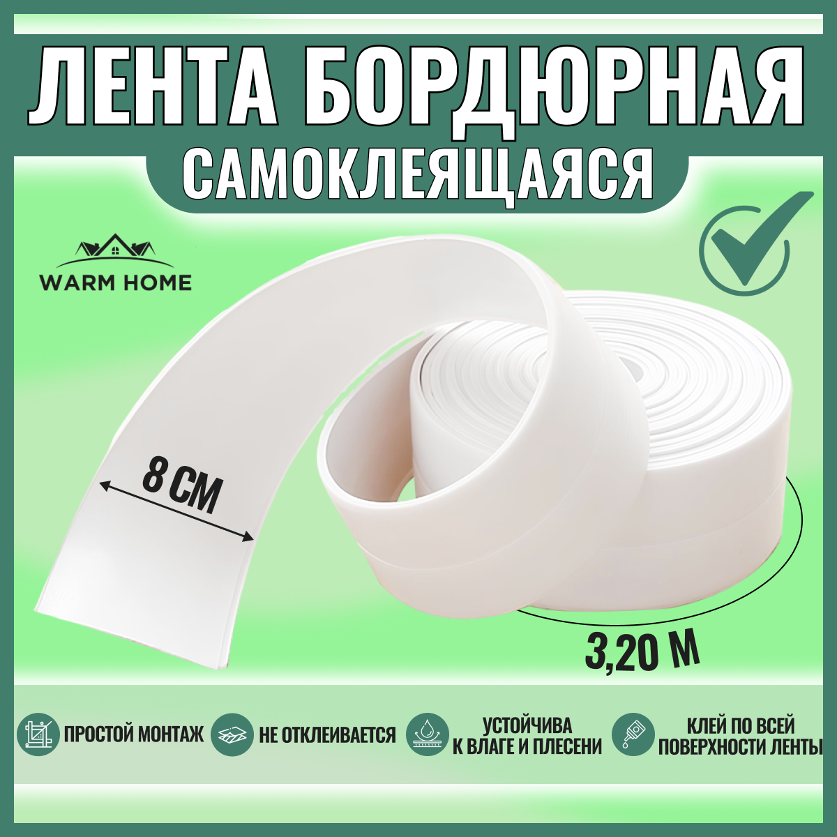 Бордюрная лента для ванны , раковины , Warm Home , белая , 8см.*3,2м. Плинтус для столешницы кухни . Водонепроницаемая , устойчивая к плесени . информация: